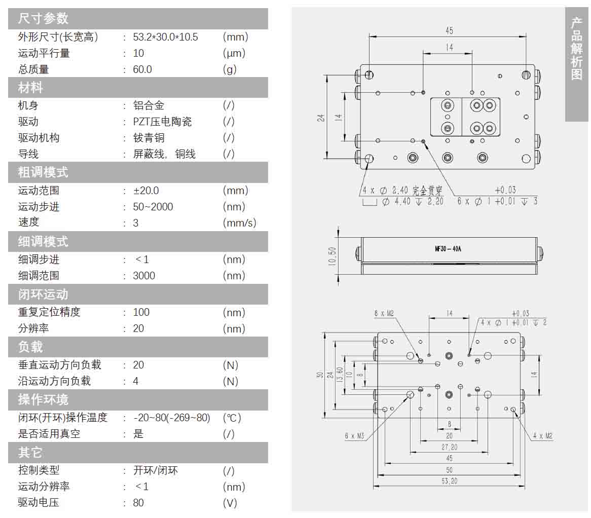 壓電直線納米位移臺(tái)MF30-40A技術(shù)參數(shù)